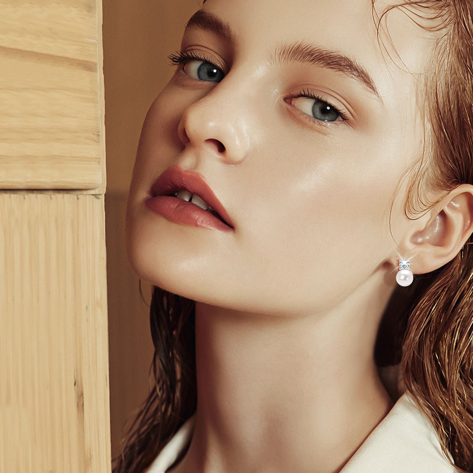 Fashionable freshwater pearl earrings s925 pure silver round strong light bulb earrings
